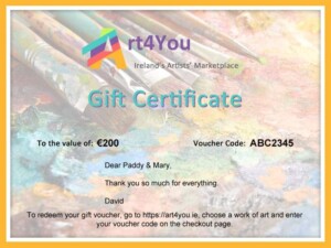 Not sure which artwork your loved one would like why not get them a personalised gift voucher. Great gift ideas for birthday’s, anniversary and christmas presents