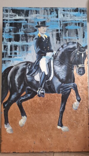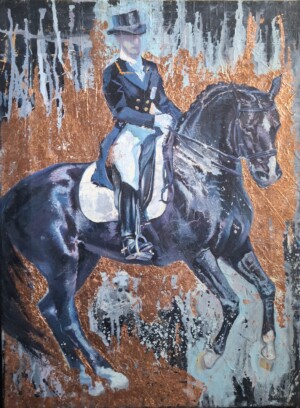 Created artpiece,depiction of Dressage horse Totilas and rider Edvard Gal, oil on canvas by professional an artist