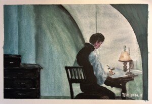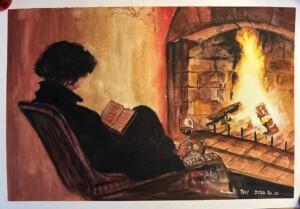 Reading in front of Fireplace