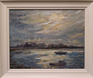 This painting takes us away from the city lights and into the peaceful countryside. It features the tranquil Blessington Lakes in County Wicklow, surrounded by rolling green hills. A perfect choice for anyone who loves nature scenes.