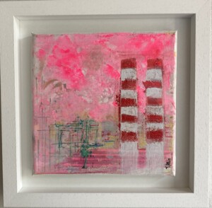 Poolbeg Chimney dublin – Original acrylic on canvas – 33 × 43 cm – wooden framed