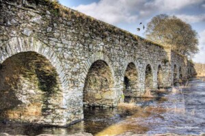The composition is reflective of ancient times that features a dirt track which snakes gently through rough, grassy terrain in the foreground. The valley itself is flanked by Mweelrea Mountain (814m)—Connacht’s highest peak—to the west and the Sheeffry Hills (specifically the Sheefry Mountains) to the east.