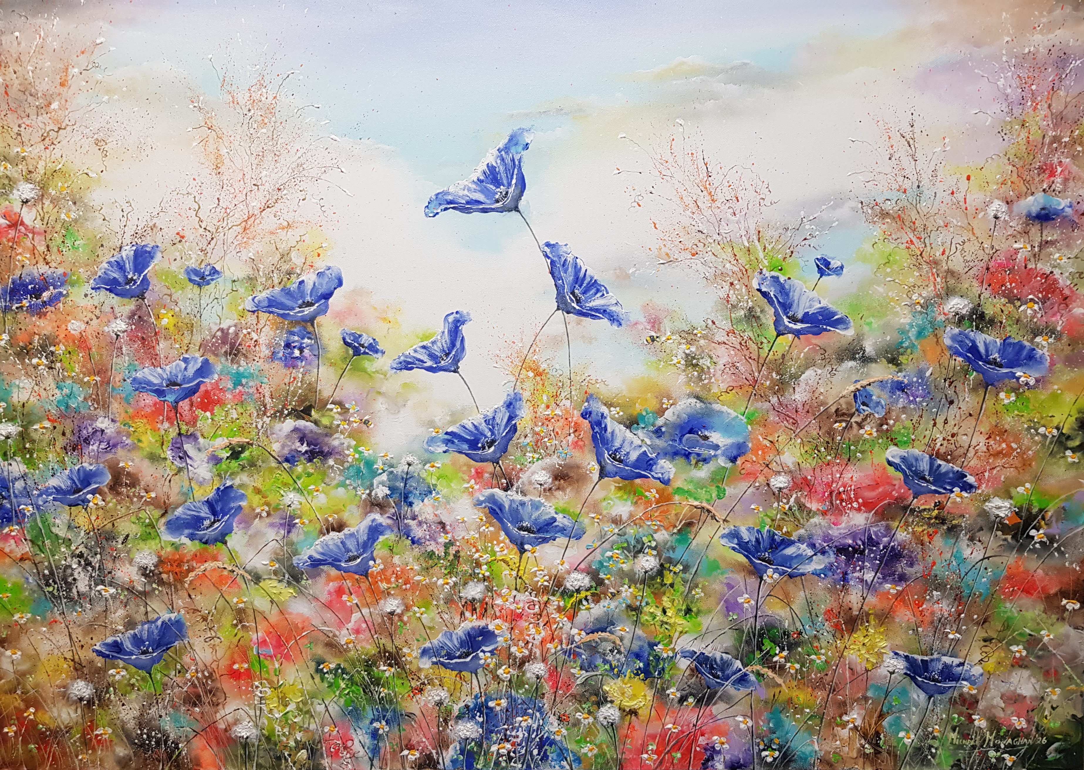 “Summer Blue Poppies ” with its thickly set flowers creates a depth that almost brings the painting to life.