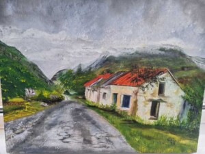 piece tells a tale. I paint primarily in oils with brush and palette knife. I look