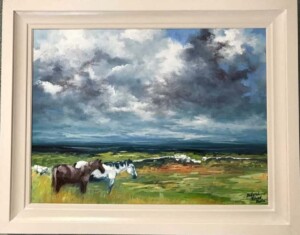 I love this painting. Two Connemara ponies looking sad under a very threatening sky.