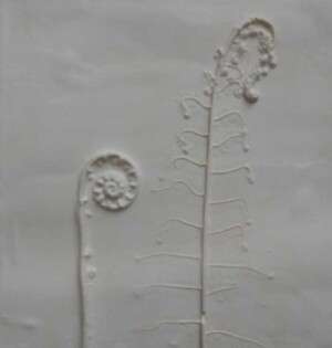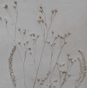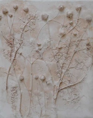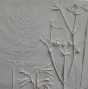 The plaster pieces are produced in my home studio where I cast seed heads and other botanical material in clay, mostly void of colour, these natural forms create a record of their texture and pattern to give a fossil like permanence to these wild plants.