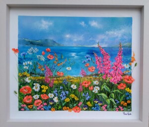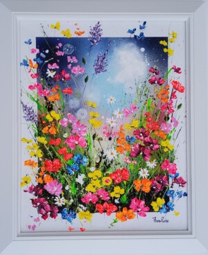 I love colour. I love life. I love nature. I love painting! I am lucky to live close to meadowland, wilderness and the sea. That’s where my imagination is fed, and where my love of colour and untamed nature finds inspiration. My palette consists of vibrant acrylic paints that heighten nature’s colours. I apply the paint in a loose, semi-abstract and free style to manifest wild and random growth. The texture of the paintings gives a wealth of tangibility and invites you into the paintings.