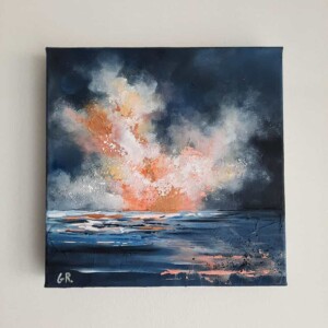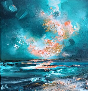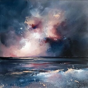 Gaelle Robert is a French painter living in Ireland. A self-taught artist, Gaelle works mainly with acrylics, representing semi-abstract landscapes spurring from both her environment and imagination. Gaelle’s work is inspired by Irish landscapes. It aspires to depict the range of emotions experienced when pausing and noticing the wonder of Irish landscapes, with a focus on sky and water.