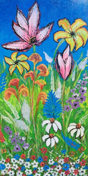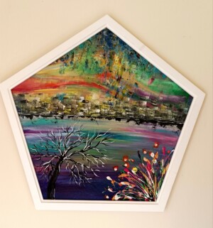 I love creating my art using brightly coloured acrylic paints on canvas, board and other mediums.