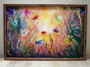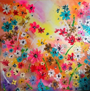 I love creating my art using brightly coloured acrylic paints on canvas, board and other mediums.