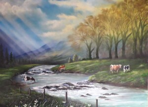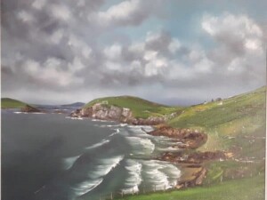 Kevin paints mostly landscapes and seascapes,and especially loves painting skies, especially in ireland cause you don't know what you get from one day to another.