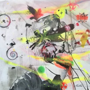 The artist primarily works with oils and spray paint on canvas, creating in the style of expressive realism. His brushstrokes are bold, intertwining ecological activism with moving human truths. His art calls for sensitivity to nature amidst human recklessness. He