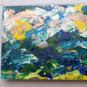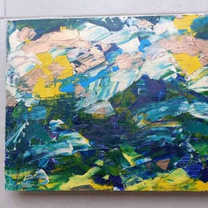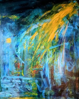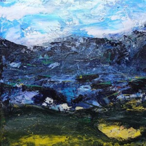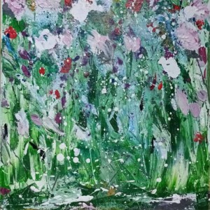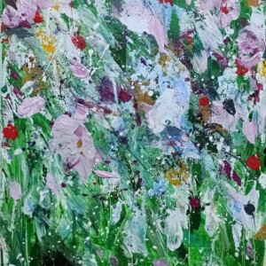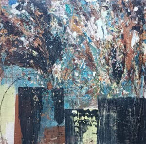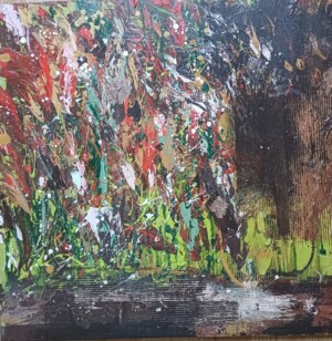 choice. Using a palette knife, sticks and other tools, I layer vibrant colours and transparent inks,